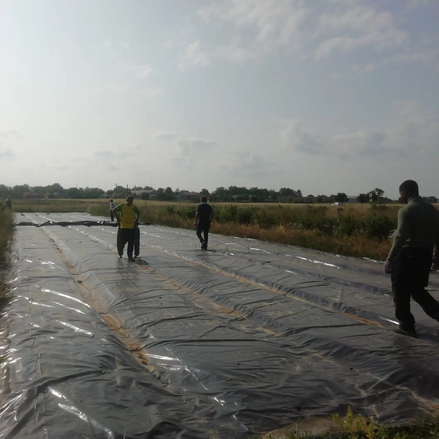 De leurs côté, Hamid, Jean-Paul, Daniel et leur équipe s'occupent de récolter les salades tandis qu'Adil, Rachid, Julien, Lenny et Jean-François retirent les bâches d'occultation avant le semis des carottes.
