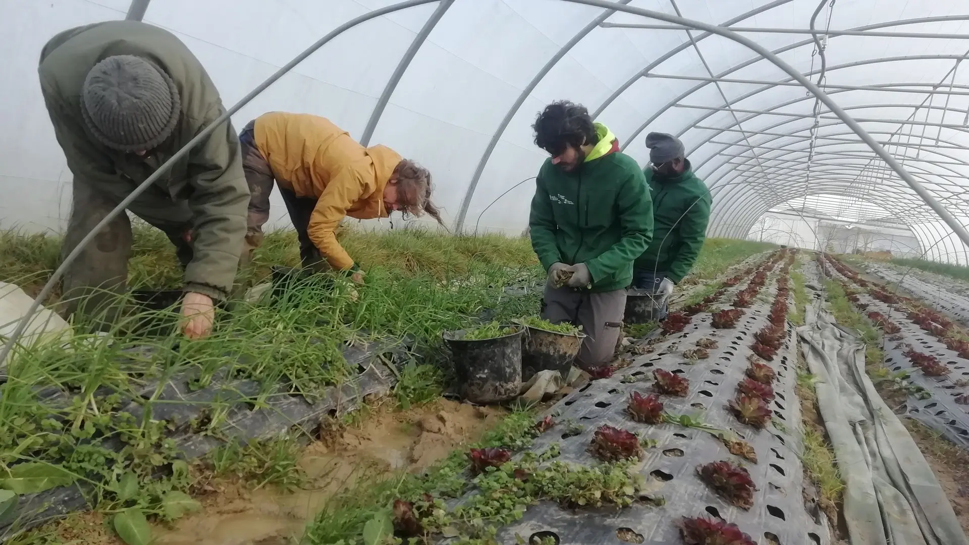 L’équipe s’active sous serre : oignons, laitues et mâche entre de bonnes mains