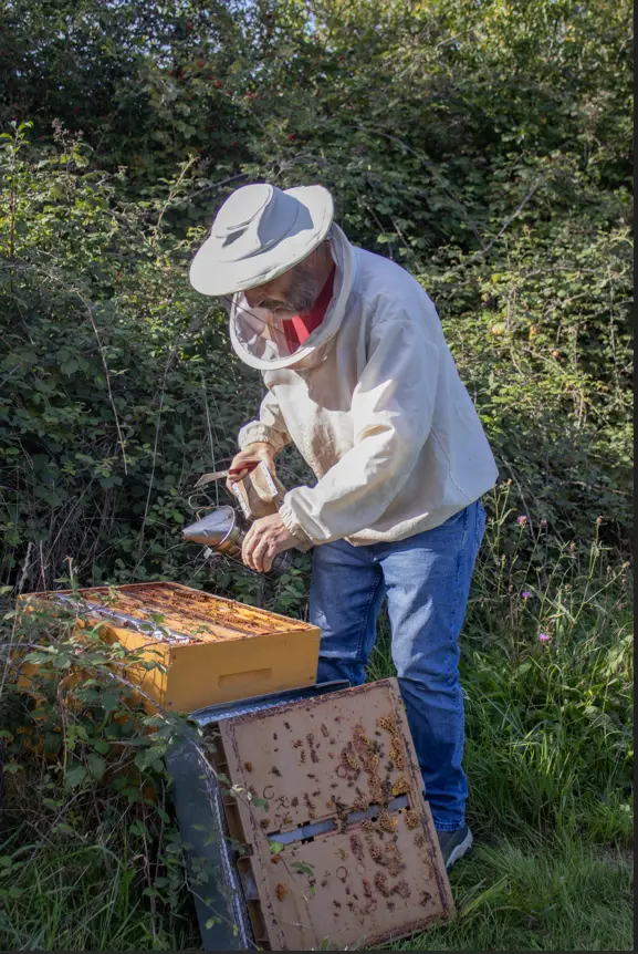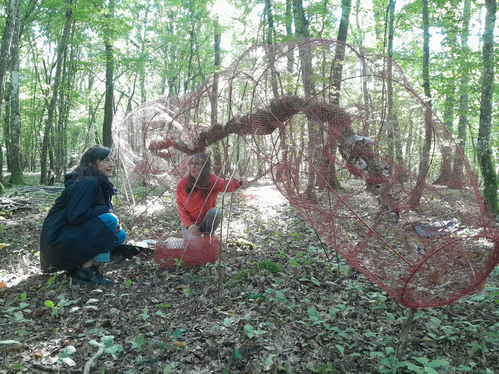 Et en coulisse, l'équipe des Jardins... Daniel en soutien à la vente de légumes de Beaune par Bénédicte ; Karen émerveillée par l'œuvre en cours d'élaboration ; le héron fabriqué par Fabien.