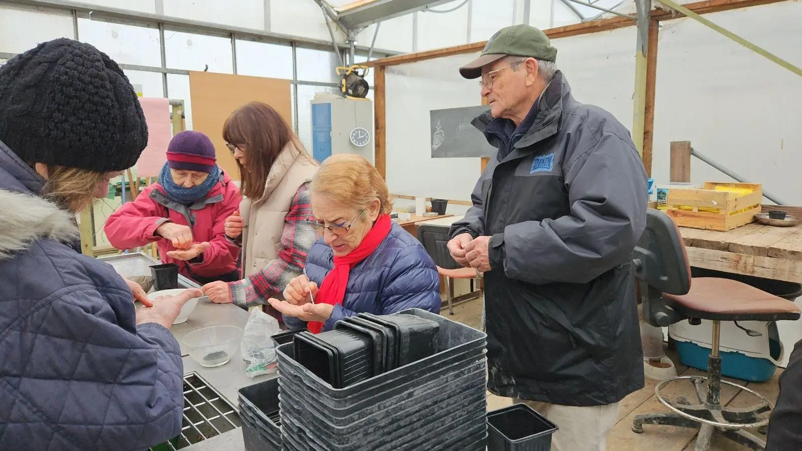Nous avons accueilli un groupe de retraités du Pithiverais venus visiter le jardin, participer à un atelier de semis dans le cadre des paniers solidaires.