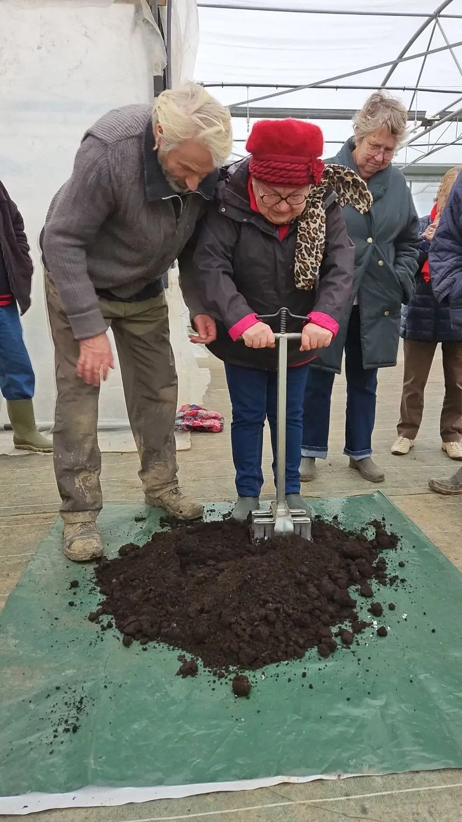 Daniel a fait une démonstration de presse-mottes puis les participants ont semé de la ciboulette.
