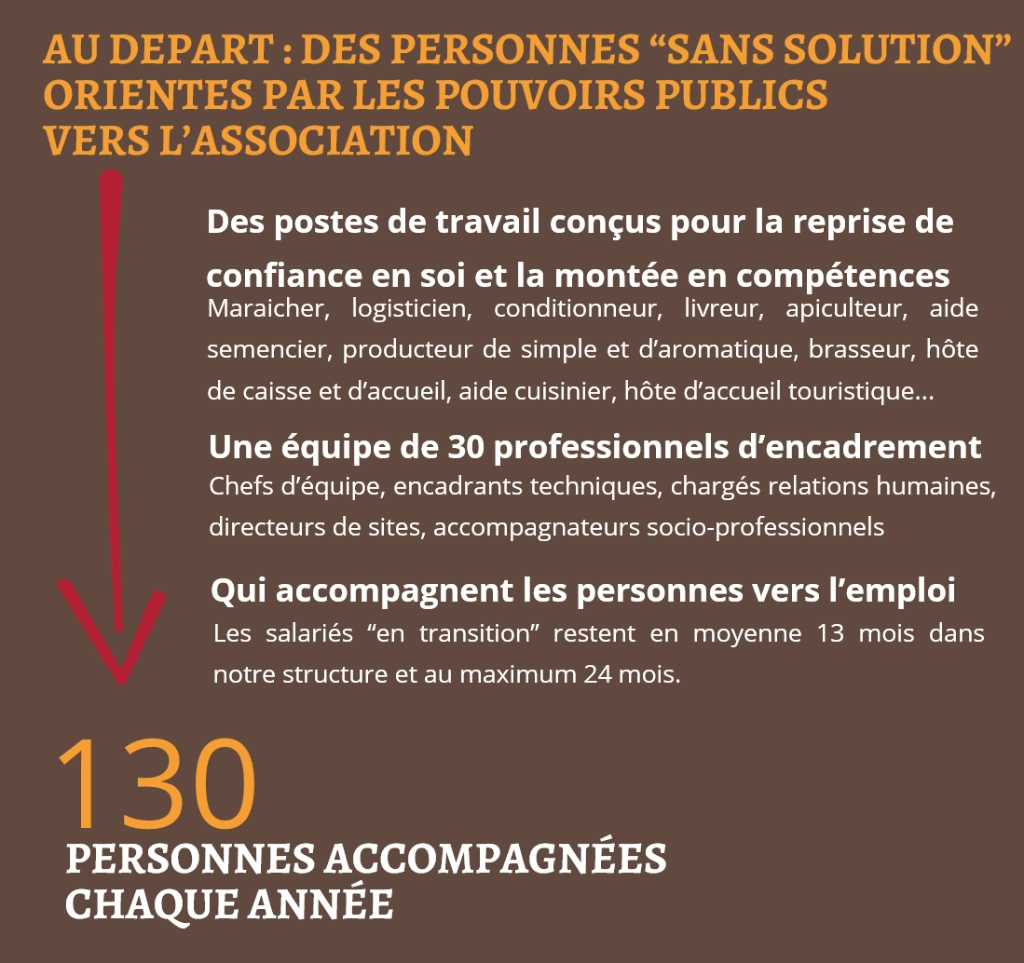 Par la reprise d’une activité salariée dans un cadre accompagnant et sécurisé, ils reprennent confiance et bâtissent un nouveau projet de vie.